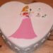 Her er lokket glattet ut. Det er mye marsipan/fondant til overs, men dette farges og brukes til pynting. Skjær bort all overflødig marsipan/fondant og glatt over en siste gang.
