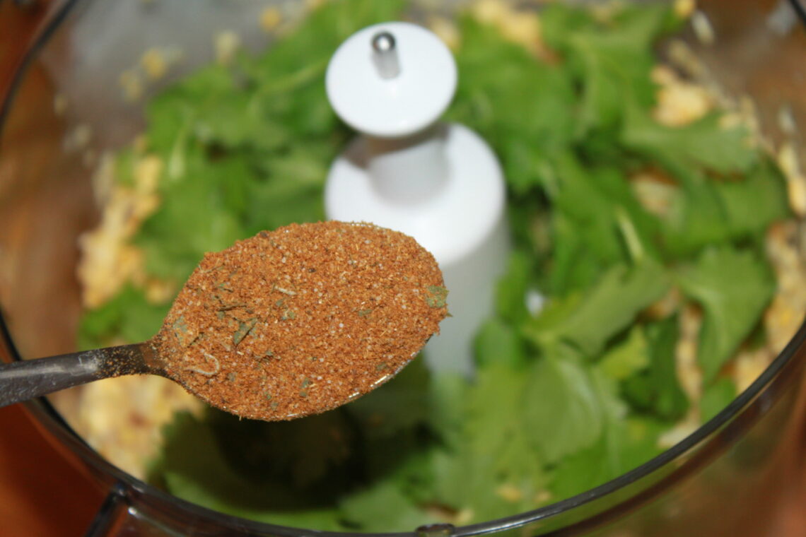 Mål opp og bland alt godt sammen, jeg pleier ikke å ha hvitløk og chilipulver i, tilsetter heller fersk når jeg lager retten, synes det smaker bedre da.