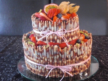 En dag før fyller jeg og trekker kakene. Festdagen stables de og pyntes. Stabling og pynting kan selvsagt også gjøres dagen før, men jeg ville ikke fylt kakene så mye som to dager i forkant.