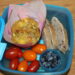 Ved siden av har jeg fylt en boks med frukt og grønnsaker. Det er viktig å ha mat som metter og holder lenge. Samtidig bør maten være innbydende. Omeletten kan fint lages klar dagen før, holder seg bra i kjøleskap. Oppskriften på omelettene finner du her.