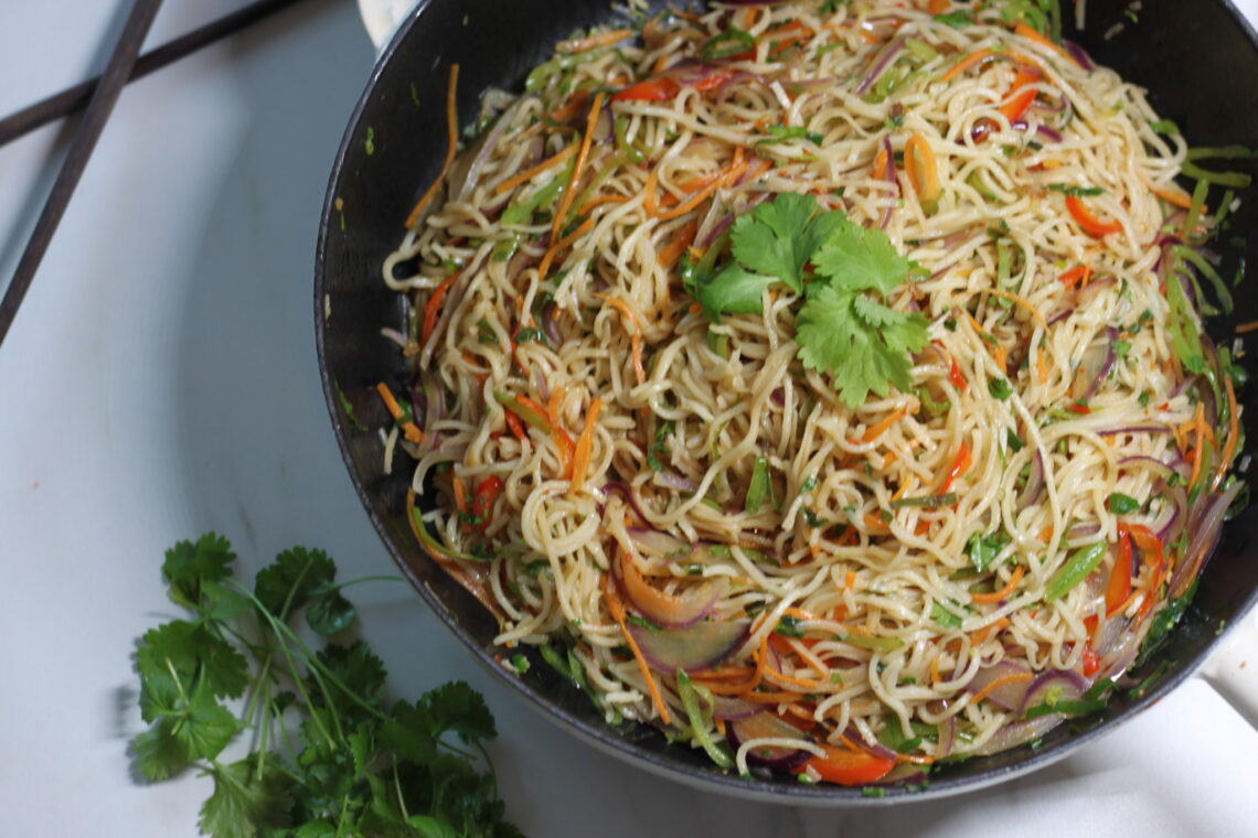 I dag har mellomste jenta og jeg vært alene hjemme. Hun ville da ha «stir-fry» til middag. I og med at hun er vegetarianer ble den laget uten kjøtt, men det kan du selvsagt tilsette om du ønsker. Det er raskt å lage, maten står på bordet i løpet av 1/2 time, så er det veldig godt.