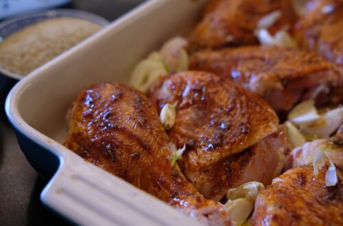 Stekes i tre omganger, sammen med bena over høy varme i nøytral olje til kjøttet har fin bruning.