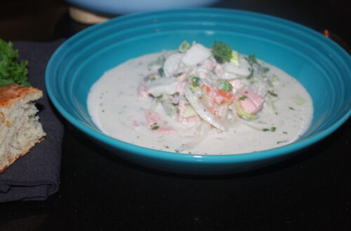 Fiskesuppe med grønnsaker og creme fraiche